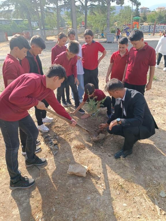 2025-2026 Eğitim Öğretim yılına Sayın Kaymakamımız Mehmet ARSOY ve İlçe Milli Eğitim Müdürümüz Ayhan KAYIRAN'ın katılımıyla okullarda doğa sevgisinin oluşması, "yeşil vatan"ın korunması, orman yangınlarına karşı farkındalık oluşturulması amacıyla ilk dersimize fidan dikimiyle başladık.